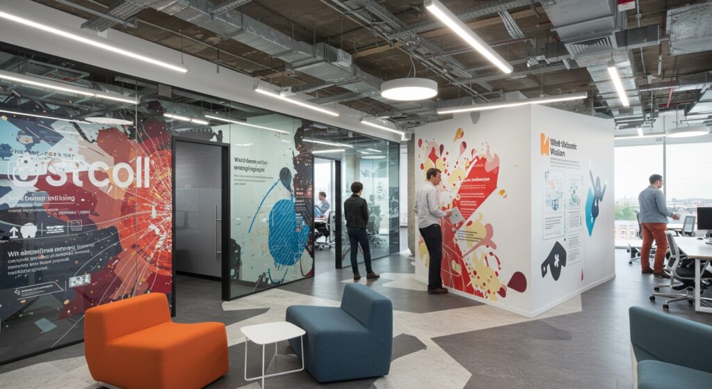 Branding is a vital part of workplace culture and client perception in the UK. Offices are known to need visual features that convey professionalism and uniqueness. Office branding graphics is a good means of presentation of mission, values and vision of a company in a creative manner. Custom stickers enable the appearance of logos and messages to a great extent in communal spaces. This makes ordinary walls function as live brand displays, impressing both clients and employees. Examples from UK businesses show impressive transformations with logos, motivational quotes, and cultural visuals. Custom wall decals or stickers provide the flexibility to change branding according to campaign or company event or seasonal offers. These low cost strategies make corporate settings motivating and supportive to long term brand recognition objectives.