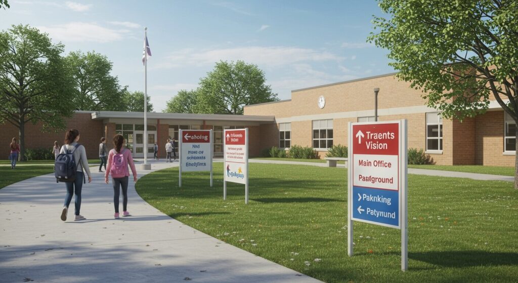 - Parents feel more secure when signage reduces confusion at drop-off.