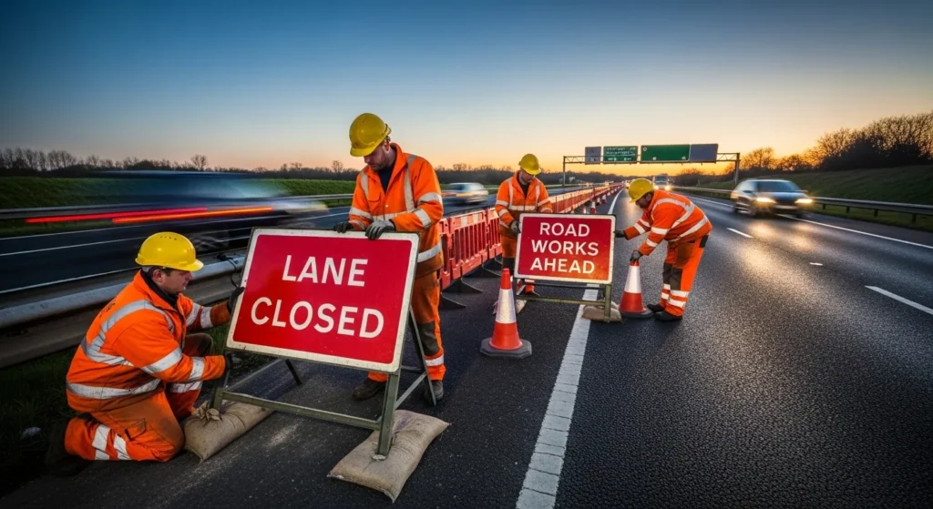 Practical installation guidance appears in Traffic Signs Manual Chapter 8. This document explains correct traffic management during road works projects. It provides instructions for contractors managing temporary traffic environments. The manual explains safe working layouts and sign placement distances. Authorities expect contractors to follow this national guidance carefully. Legal compliance also connects with the New Roads and Street Works Act. This law regulates responsibilities during highway maintenance activities.