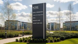 For Example, A retailer launching a holiday pop-up may prefer flexible, colourful display signage, while a corporate HQ may invest in long-lasting cast signage with a metallic finish.