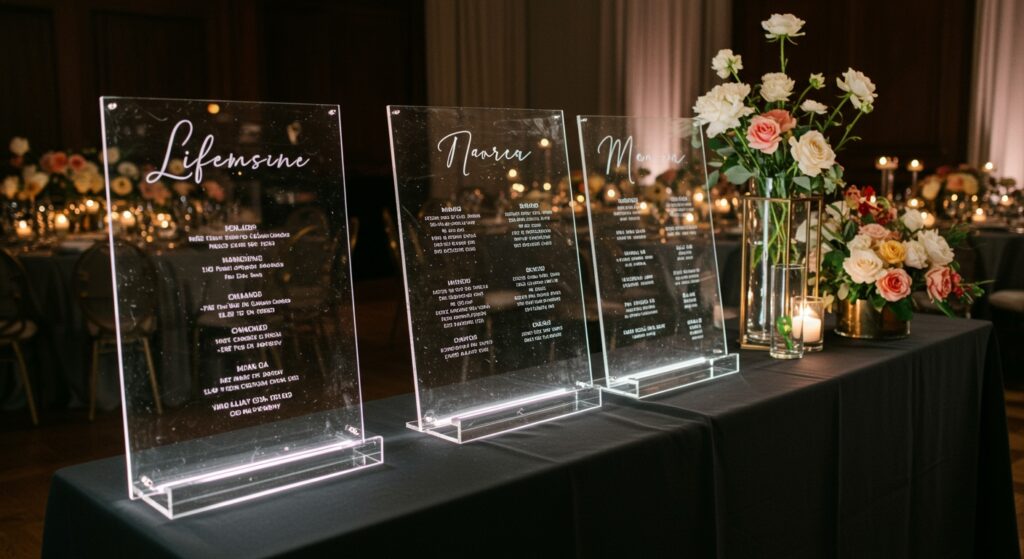 For creative setups, many designers now follow tutorials on attaching flowers or lights to modern acrylic display signs. These ideas continue to grow in popularity across the UK event industry.