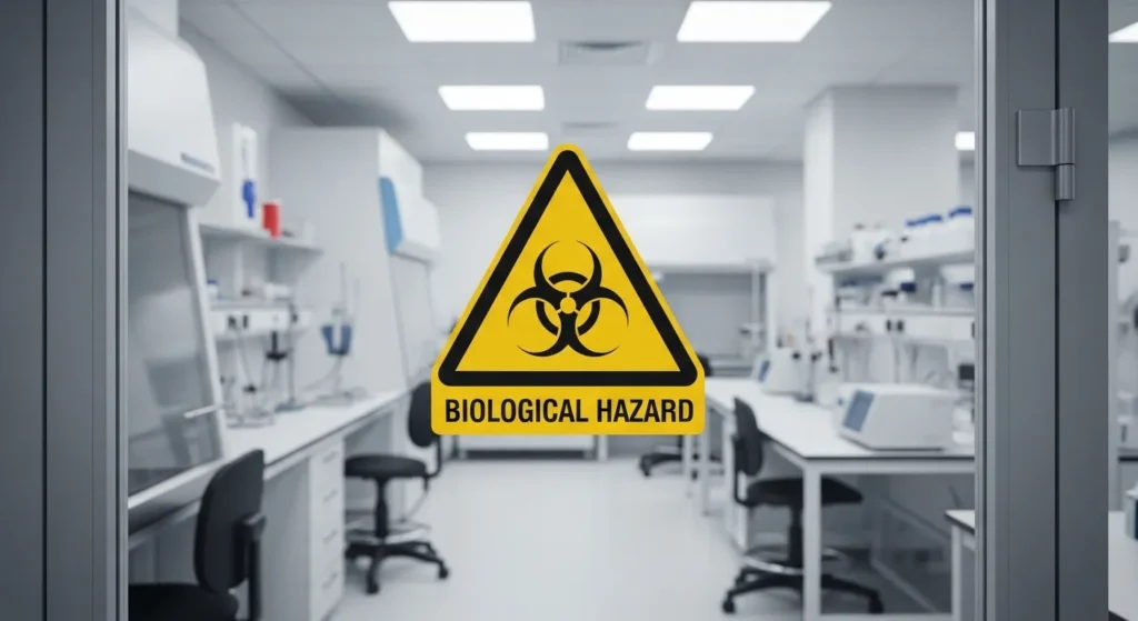 An electrical hazard sign warns near high voltage equipment. Laboratories display a chemical hazard symbol clearly. Hospitals may show a biological hazard notice prominently. Industrial areas post a radiation hazard warning sign. Fuel storage displays warnings for flammable materials risks.