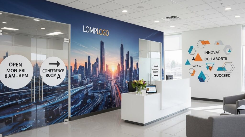 Wall murals cover large spaces and bring deep colour into any room. They make a strong impression when people walk into a business. These visuals often stay on walls for a long period with ease. Murals work well in busy spaces because they look bold and professional. Many UK companies use them to build long-term brand identity. The smooth and rich style helps create memorable experiences for visitors daily. You can find many ideas through wall graphics inspiration for modern themes. Peel-and-stick mural options also help teams change designs easily. Murals give depth, warmth, and character to many business spaces. They help brands communicate stories visually in a clear, powerful way.