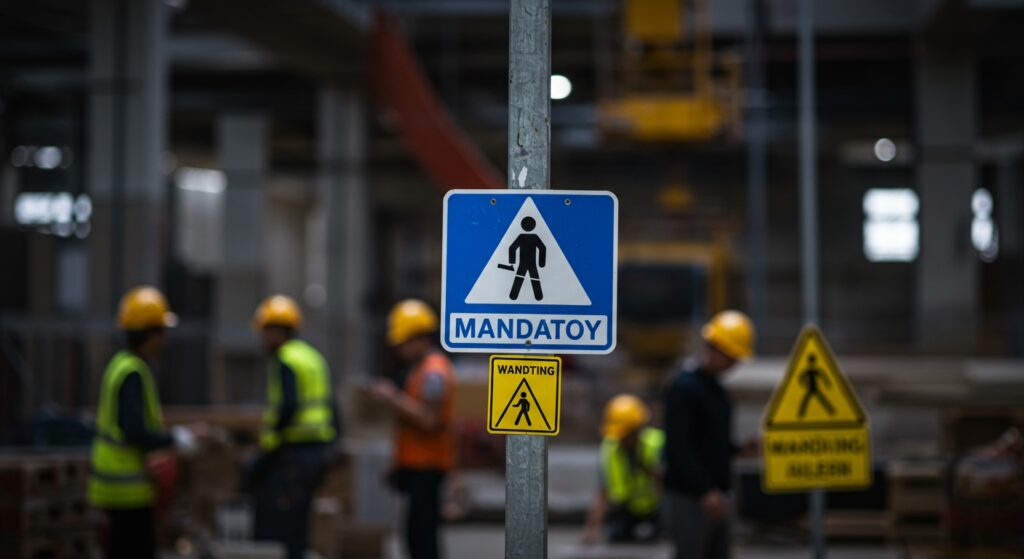Blue communicates instruction and authority. A mandatory blue sign tells people what they must do for safety. Examples include “Wear Hard Hat,” “Use Hand Sanitiser,” or “Safety Goggles Required.” The circular shape adds some sense of direction and compulsion or obligation. These are part of the ISO 7010 system, which is used in UK workplaces to standardise safety messages across the world. Blue represents rules rather than warnings, ensuring compliance through clarity. Workers quickly understand what action is required just by glancing at the blue circle. These signs keep environments disciplined, reducing risks and ensuring everyone follows protocol. For an in-depth overview of required blue safety visuals, businesses can review Zero Signs’ article on mandatory workplace signage.