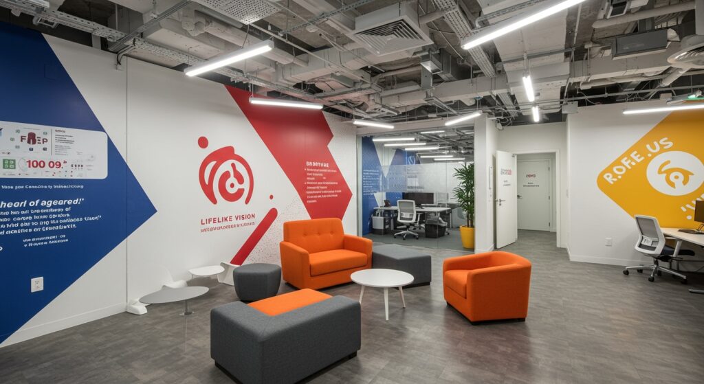 Office branding importance extends far beyond decoration, making it a true business strategy. In the UK, offices face growing pressure to impress clients and inspire employees. With branded office design, you communicate trust, professionalism, and culture at once. From branded wall graphics to custom office signage branding, every detail shapes success. Workplace branding benefits include recognition, employee pride, and client trust across industries. A strong brand identity workplace becomes an asset, ensuring your office supports growth and success.